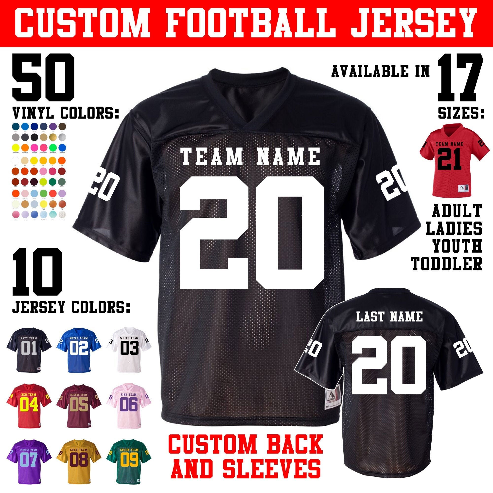 Custom Football Jersey With Custom Back And Numbered Sleeve Etsy